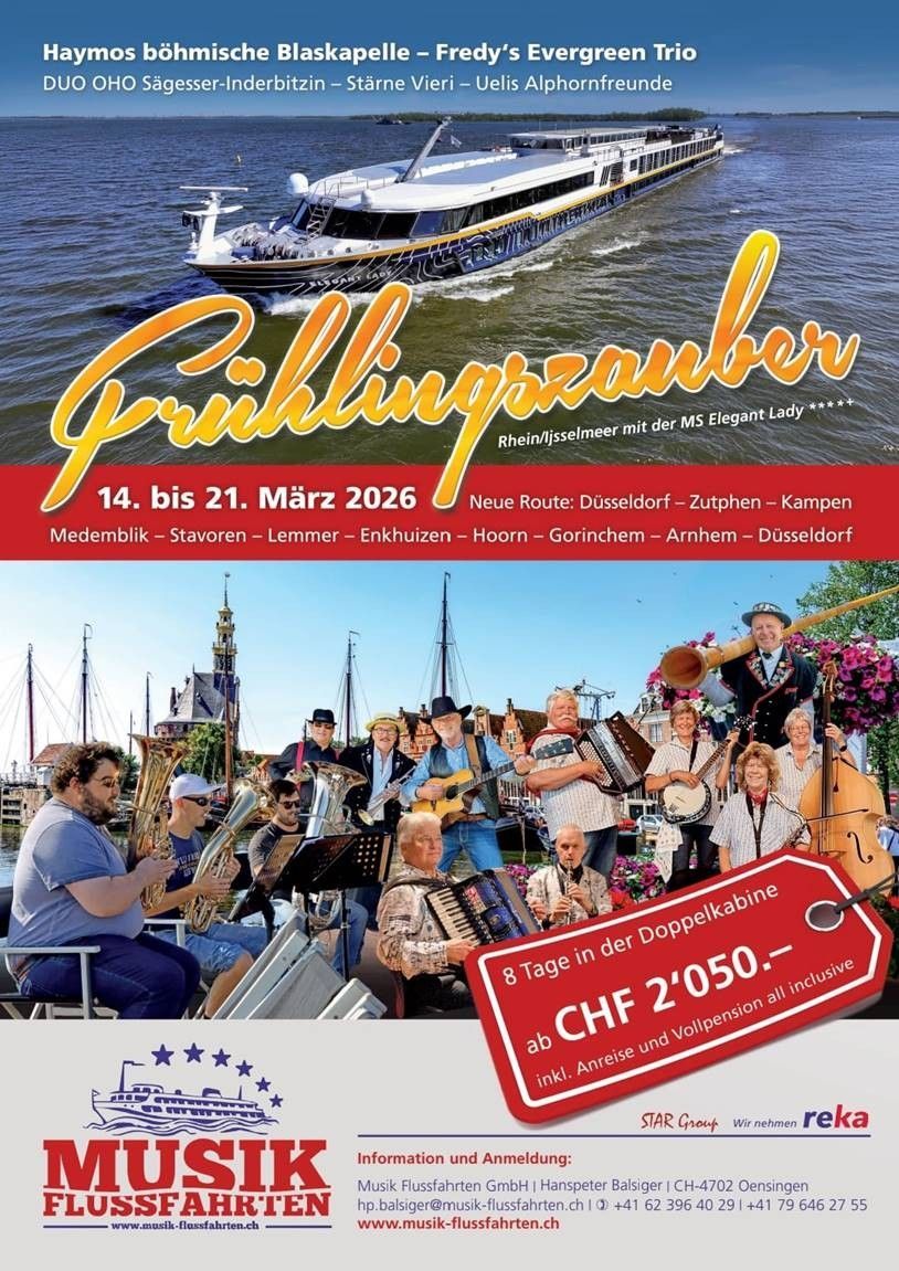 JETZT BUCHEN: https://www.musik-flussfahrten.ch/reisen_2025 oder tel. 062 396 40 29 (Hanspeter Balsiger)
